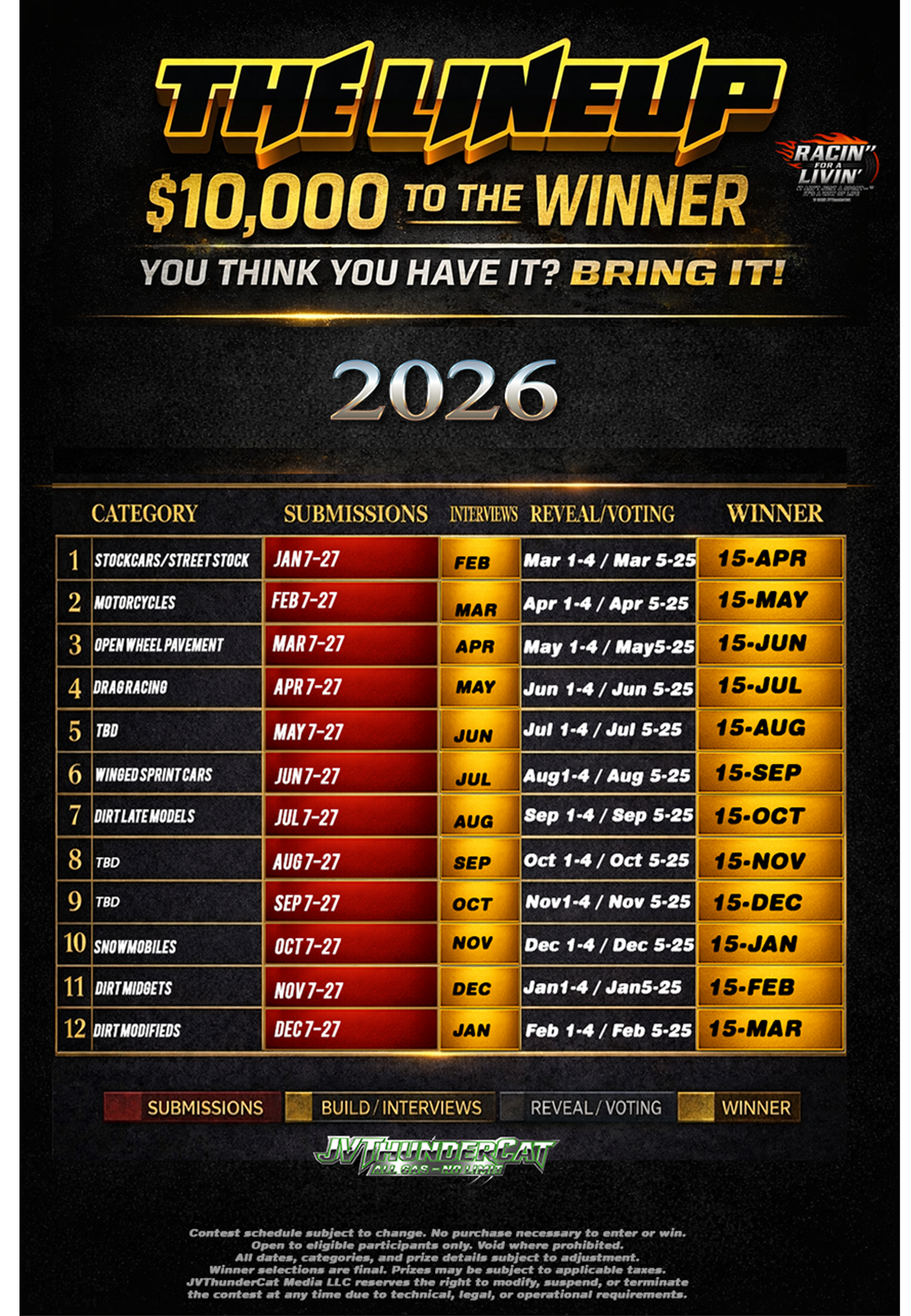 12 Categories. 12 Months. $10,000 Each.